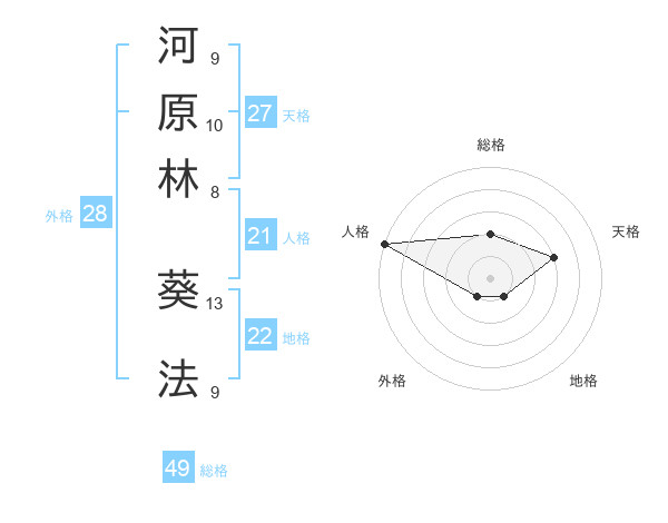河原林 葵法さんを姓名の画数から五運を鑑定