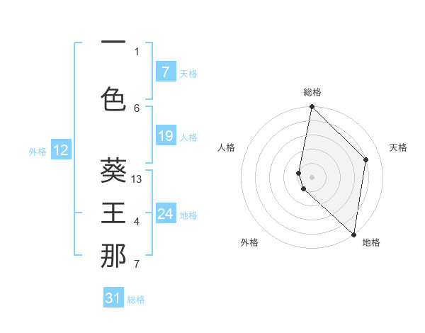 一色 葵王那さんを姓名の画数から五運を鑑定
