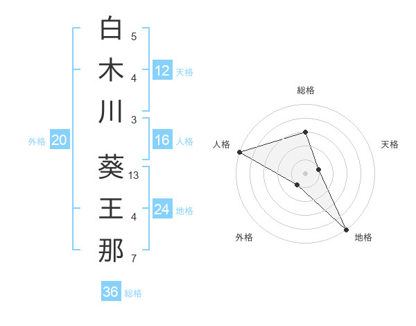 白木川 葵王那さんを姓名の画数から五運を鑑定