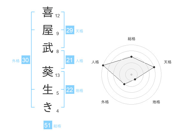 喜屋武 葵生きさんの総格は51画の3点!