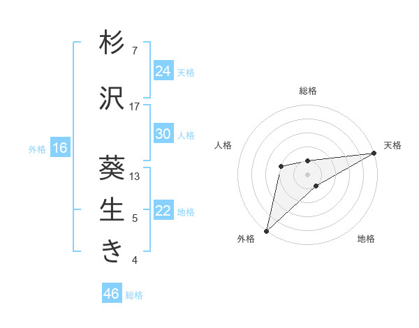 杉沢 葵生きさんを姓名の画数から五運を鑑定