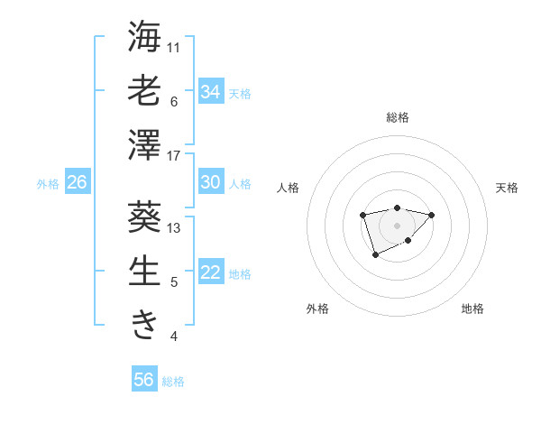 海老澤 葵生きさんを姓名の画数から五運を鑑定