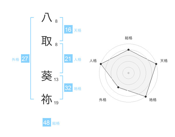 八取 葵祢さんを姓名の画数から五運を鑑定