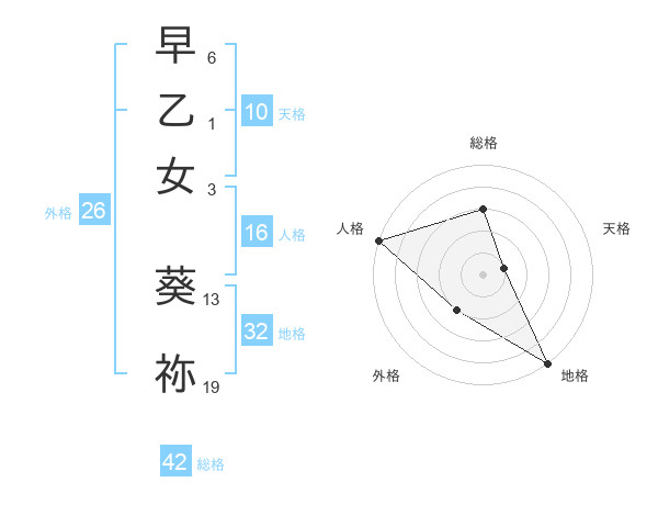 早乙女 葵祢さんを姓名の画数から五運を鑑定