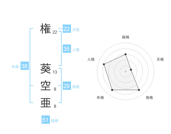 権 葵空亜さんの総格は51画の3点!