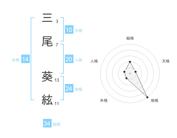三尾 葵絃さんを姓名の画数から五運を鑑定
