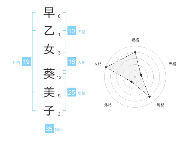 早乙女 葵美子さんの総格は35画の4点!
