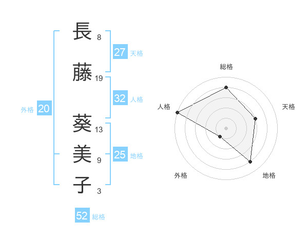 長藤 葵美子さんを姓名の画数から五運を鑑定