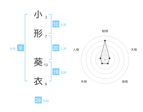 小形 葵衣さんを姓名の画数から五運を鑑定