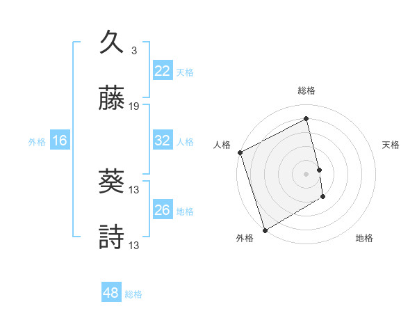 久藤 葵詩さんを姓名の画数から五運を鑑定