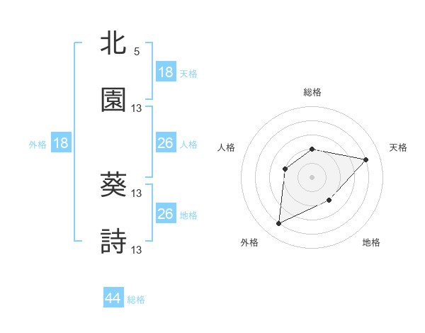 北園 葵詩さんを姓名の画数から五運を鑑定
