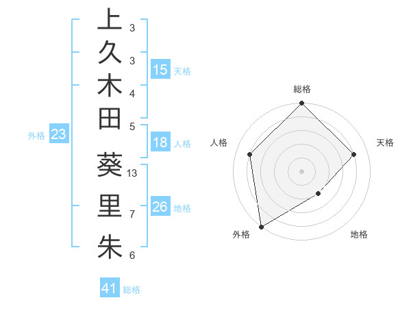上久木田 葵里朱さんを姓名の画数から五運を鑑定
