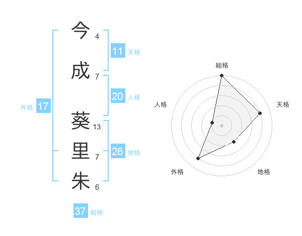 今成 葵里朱さんの総格は37画の5点!
