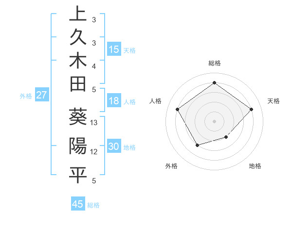 上久木田 葵陽平さんを姓名の画数から五運を鑑定