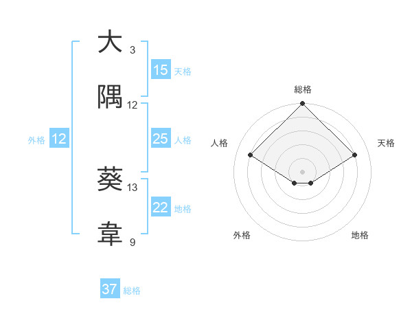 大隅 葵韋さんを姓名の画数から五運を鑑定