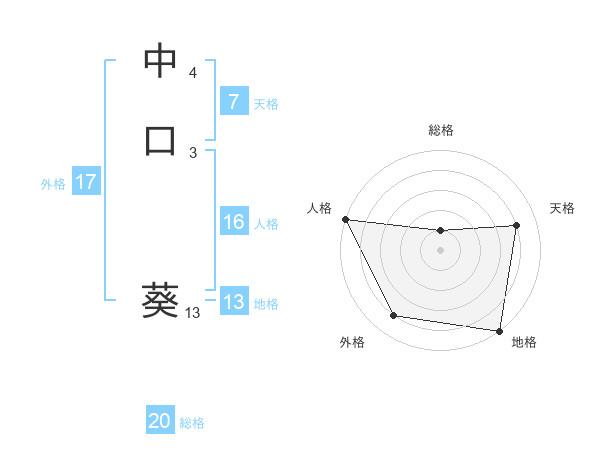 中口 葵さんの総格は20画の1点!