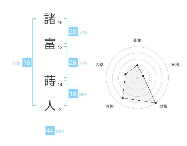 諸富 蒔人さんの総格は44画の2点