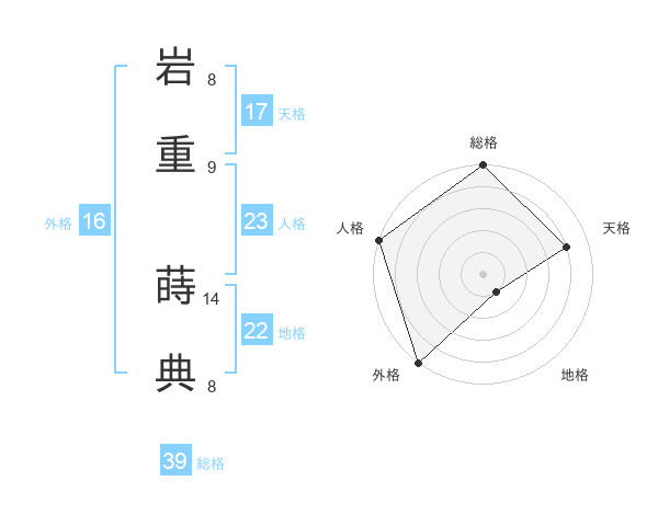 岩重 蒔典さんを姓名の画数から五運を鑑定