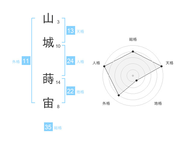 山城 蒔宙さんを姓名の画数から五運を鑑定