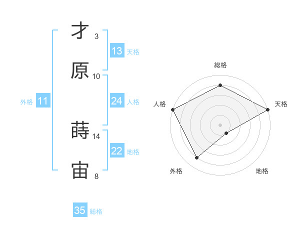 才原 蒔宙さんを姓名の画数から五運を鑑定