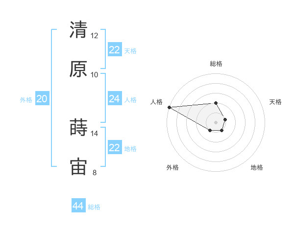 清原 蒔宙さんの総格は44画の2点!