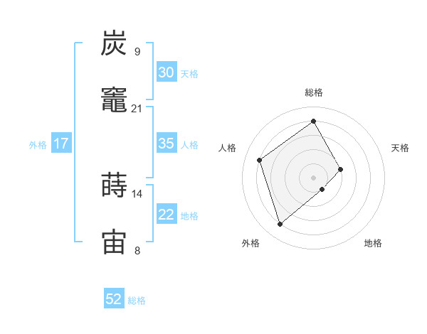 炭竈 蒔宙さんを姓名の画数から五運を鑑定