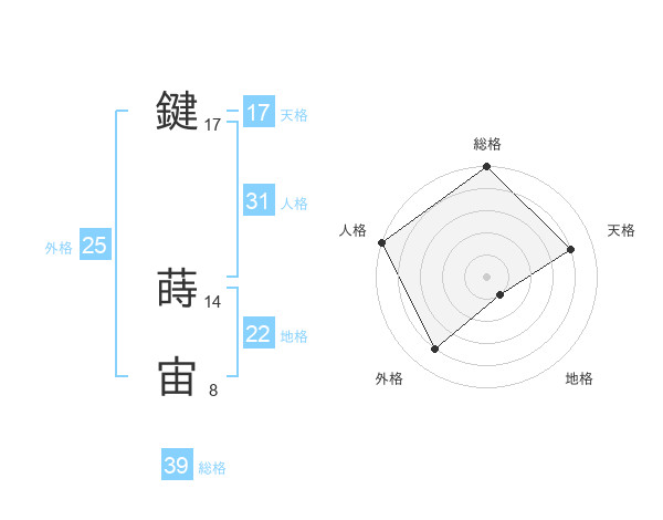 鍵 蒔宙さんを姓名の画数から五運を鑑定