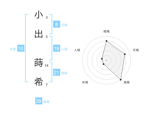小出 蒔希さんの総格は29画の4点!