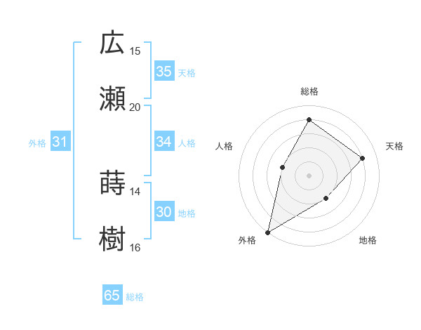 広瀬 蒔樹さんの総格は65画の4点!