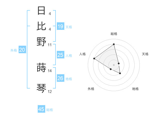 日比野 蒔琴さんを姓名の画数から五運を鑑定