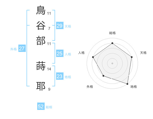 鳥谷部 蒔耶さんを姓名の画数から五運を鑑定