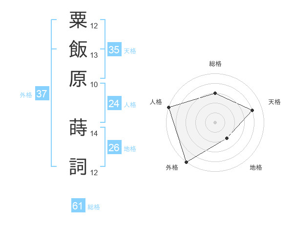 粟飯原 蒔詞さんを姓名の画数から五運を鑑定