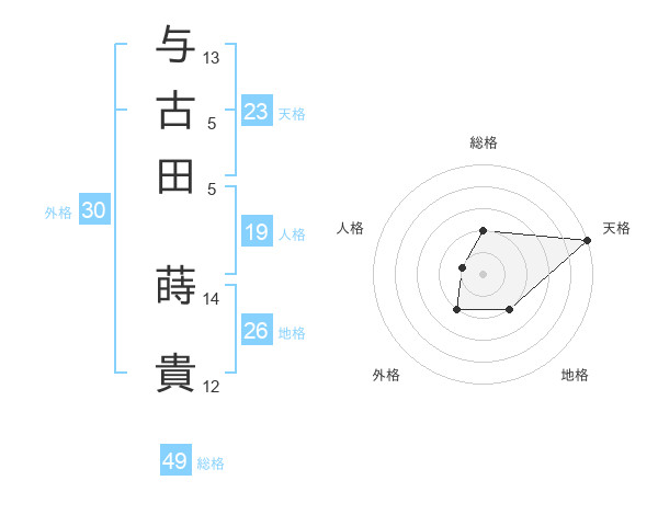 与古田 蒔貴さんを姓名の画数から五運を鑑定