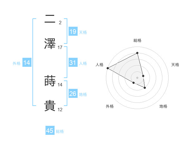 二澤 蒔貴さんの総格は45画の4点!