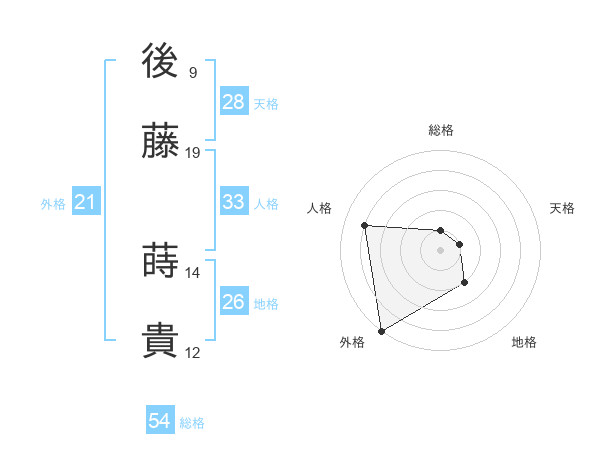 後藤 蒔貴さんを姓名の画数から五運を鑑定