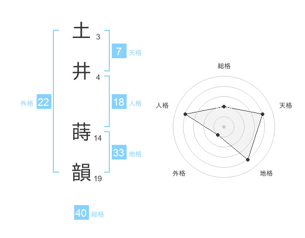 土井 蒔韻さんを姓名の画数から五運を鑑定