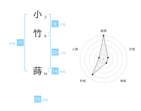 小竹 蒔さんの総格は23画の5点!