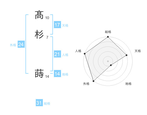 髙杉 蒔さんの総格は31画の5点!