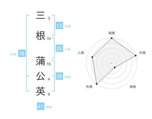 三根 蒲公英さんを姓名の画数から五運を鑑定
