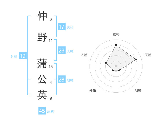 仲野 蒲公英さんを姓名の画数から五運を鑑定