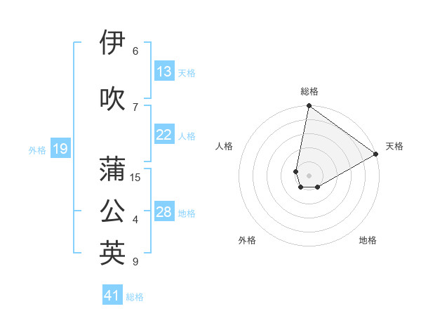 伊吹 蒲公英さんを姓名の画数から五運を鑑定