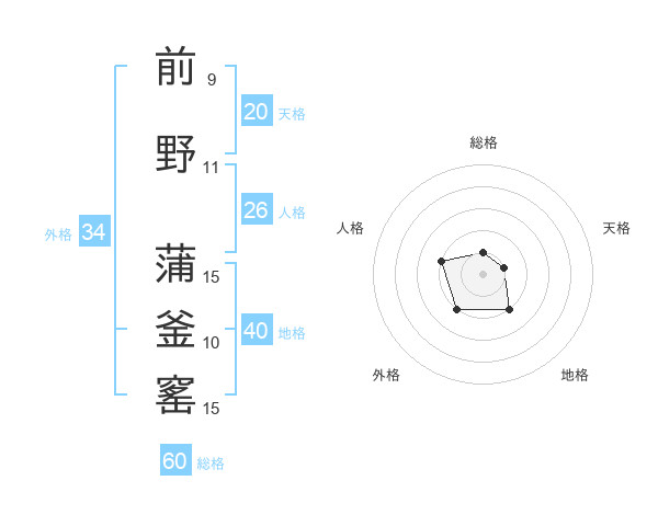前野 蒲釜窰さんを姓名の画数から五運を鑑定