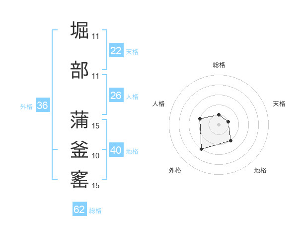 堀部 蒲釜窰さんを姓名の画数から五運を鑑定