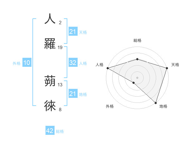 人羅 蒴徠さんの天格は21画の5点!