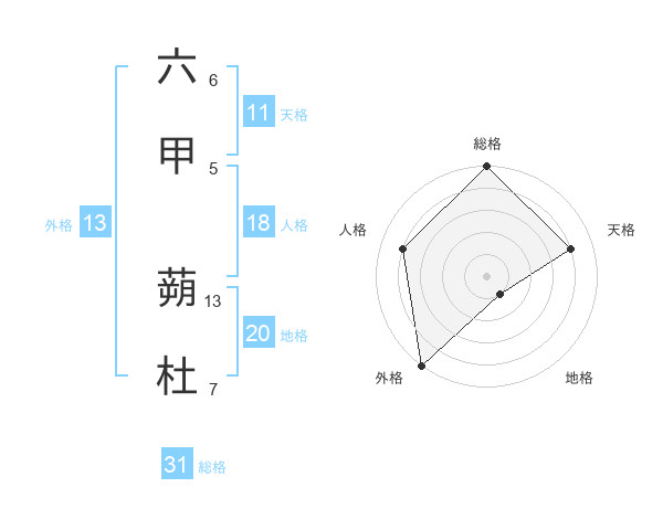 六甲 蒴杜さんを姓名の画数から五運を鑑定