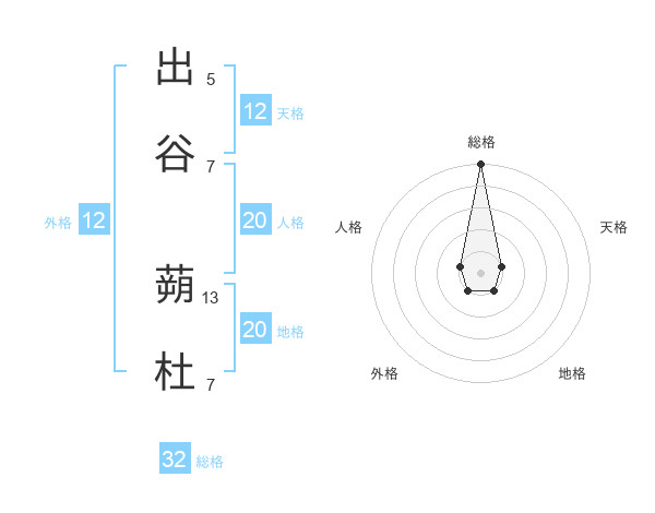 出谷 蒴杜さんの総格は32画の5点!