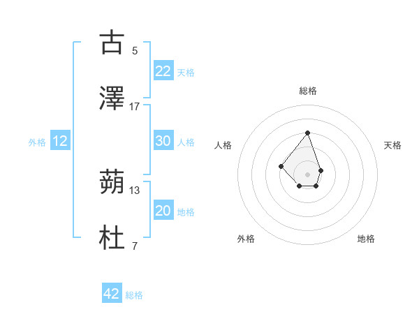 古澤 蒴杜さんの総格は42画の3点!