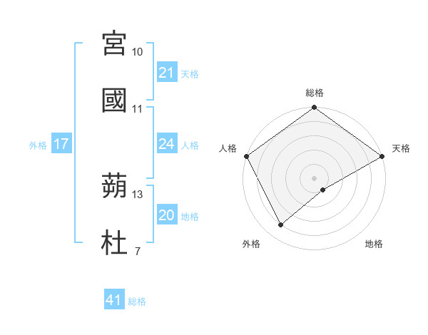 宮國 蒴杜さんの天格は21画の5点!