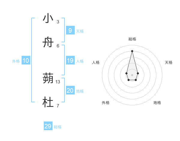 小舟 蒴杜さんの総格は29画の4点!