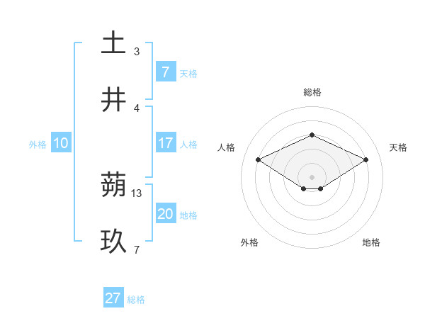 土井 蒴玖さんの総格は27画の3点!